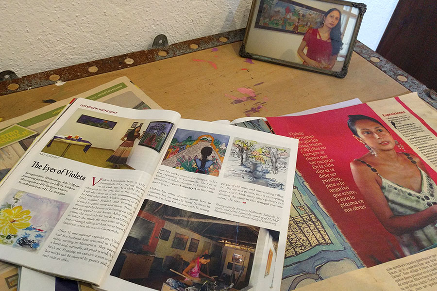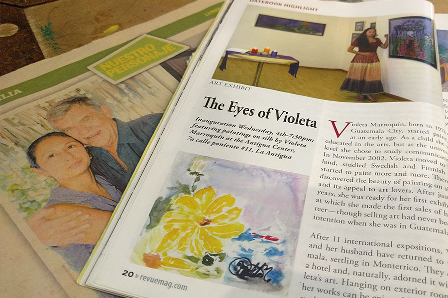 After 11 international expositions, Violeta and her husband have returned to Guatemala, setting in Monterrico. They opened a hotel and, naturally, adorned it with Violeta´s art. Now her work comes to La Antigua, in her first exposition in Guatemala, The Eyes of Violeta – a subtle reference to Violeta´s near blindness – opens February 4 at the Antigua Center. “For me as a painter, this is an inspiring place, and I think many other painters can discover the same in this tranquil environment”, she says.