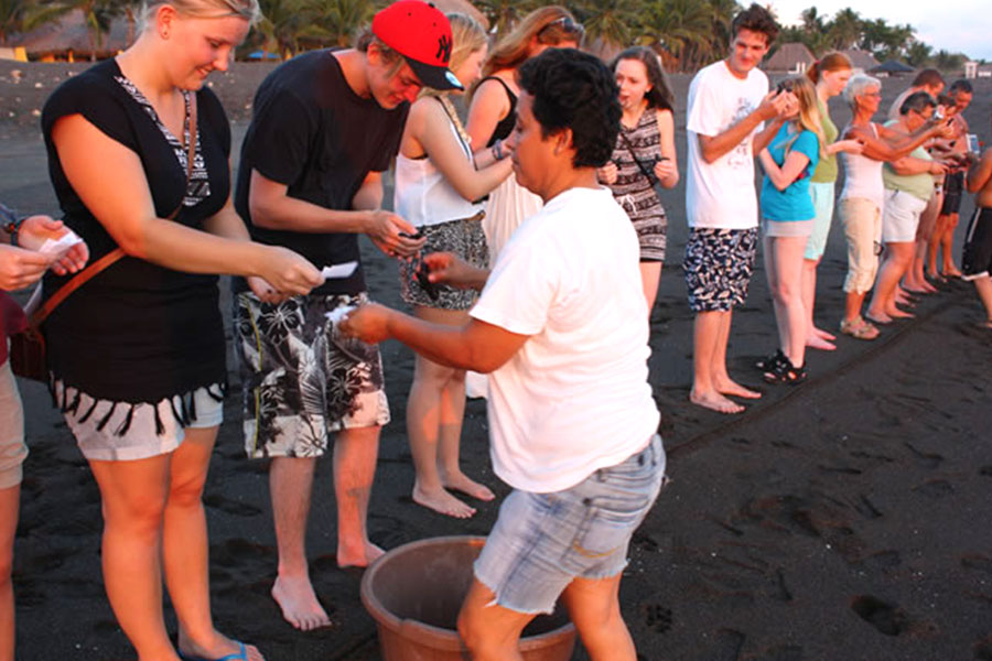 From September to February they release the new born turtles most every afternoon at 5.30 pm. By adopting a turtle for 10 Q you can help El Centro de Estudios Conservacionistas CECON-USAC to get funds to buy more eggs.